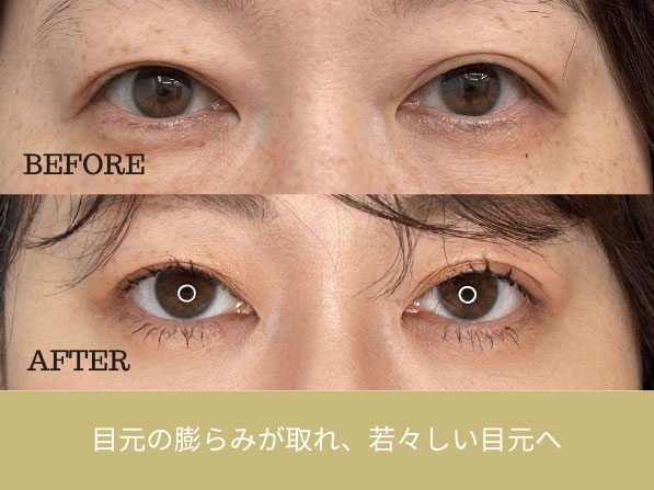 術後3年が経過しているものの、目立ったトラブルはなく、効果も持続しているようです。目の下が整うことで、全体的に若々しい印象へと変化した症例とされています。